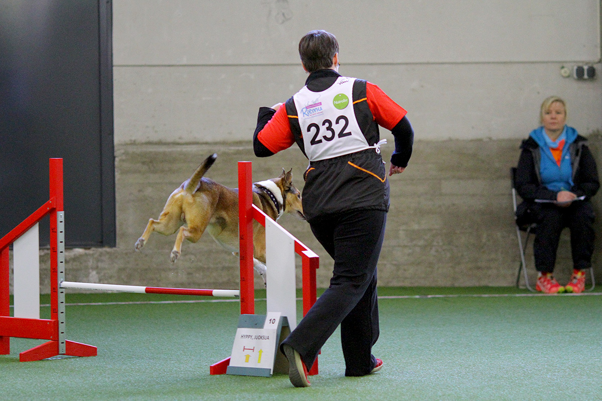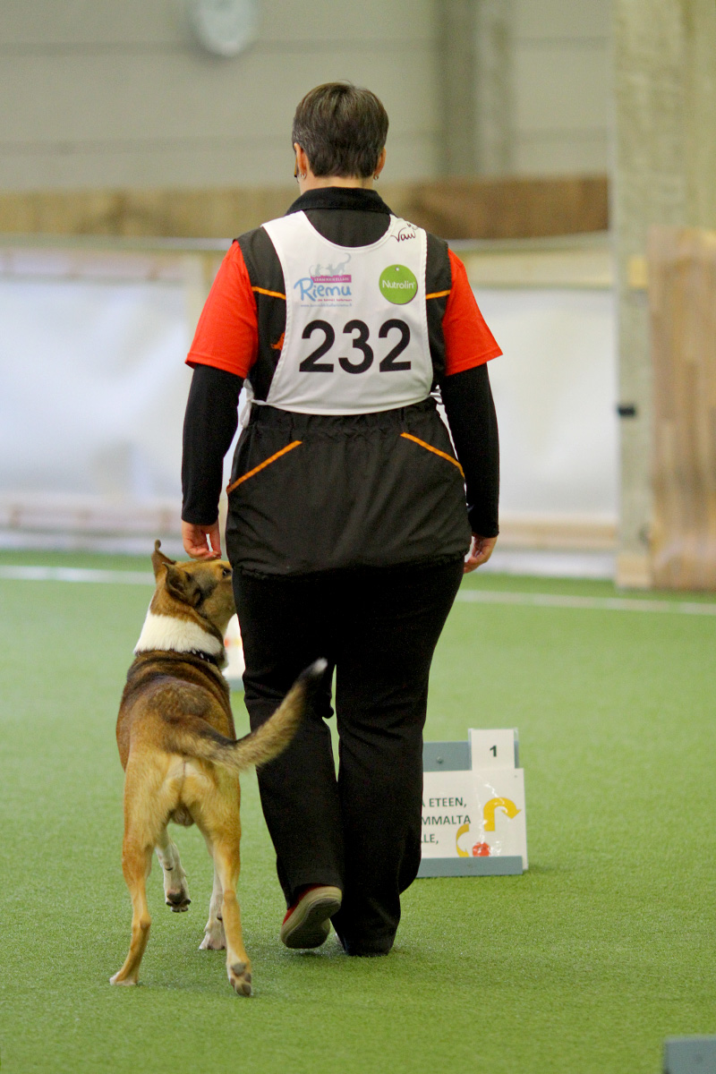 Pyörähdykseen jouduin antamaan kaksi käskyä ja varsin voimakkaalla vartaloavullakin, mutta se pyöri kuitenkin. Hyppy onnistui nyt hallitusti ja seuraamiseen paluukin tuli hyvin ja houkutushan ei ole ongelma ollutkaan, kunhan seuraaminen pysyy kasassa pyöriessä. Loppuradan askel oikeaan oli jälleen istumisen osalta vähän kintaalla, mutta koska seuraavana oli maali en edes tajunnut sitä. No, itse olin varma että joku noista istumisista meni virheeksi, mutta eipä mitä! Niin vain saatiin puhdas suoritus ja täydet 100p radalta! Ja upeasti vielä luokan voittoon ainolla puhtaalla radalla 46 kisaajan joukosta 😮 Whohoo!
