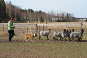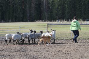 Eihän se edelleenkään lampaista kauheasti intoile, mutta toisaalta on niin kiltti että sen sai jälleen päästää jo ensimmäisellä yrityksellä vapaaksi liinasta. Meillä oli kouluttajan sanoin ”positiivinen hallintaongelma,” sillä Tenhon tarjosi kovasti seuraamista tuolla lampailla kun ei tiennyt mitä pitäisi tai saisi tehdä. Se ei halunnut jättää minua yksin lampaiden lähellä, vähän välillä pääsin pakoon ettei ihan kylkikyljessä kokoajan kävelty.