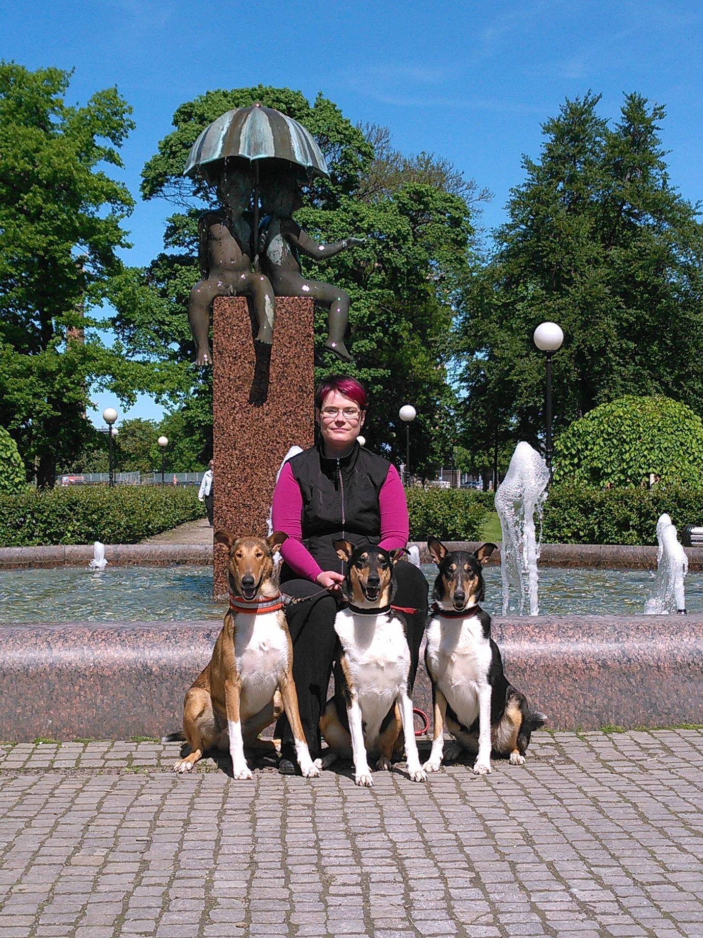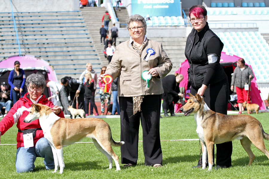 1.6.2014 tehtiin reissu Tallinnaan Viron voittajanäyttelyyn. Matkustussää (noin 10 astetta lämmintä) oli onneksi koirien kannalta tosi kiva ja meillä olikin mukana koko kolmen koiran tiimi kotoa, vaikkakaan näyttelyyn ei ollut ilmoitettuna kuin Tenho ja Näpsä.